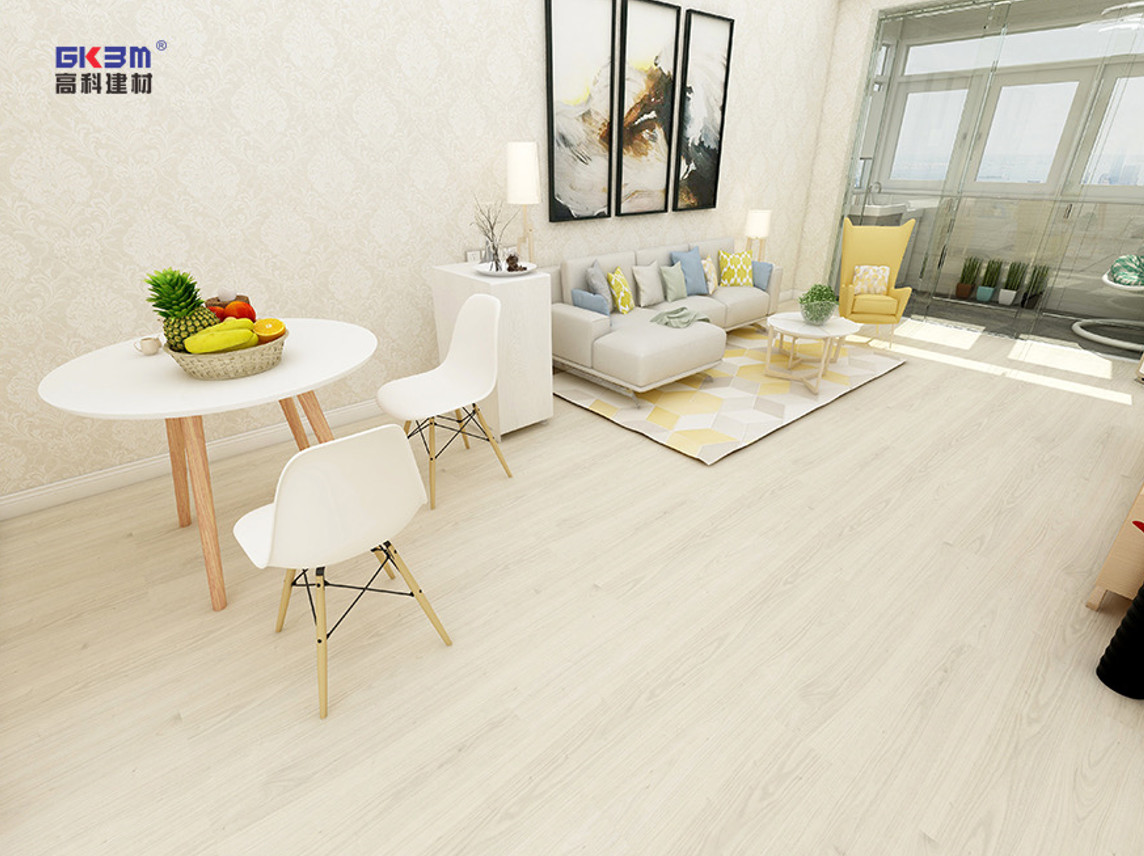 GKBM Greenpy MJ-W6001 New Environmental Friendly Ice-snow Burlywood Unilin Click Wood Grain SPC Flooring